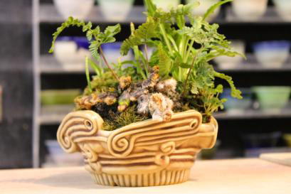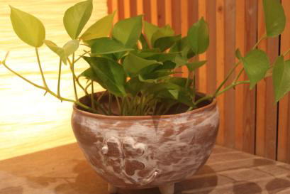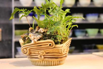 ![]() 植木鉢を作る方は、ひたすら植木鉢を作り続けることが多いような気がします。すると、シンプルな形もあれば、このようなユニークな形も生まれてきます。植物の緑が映えます。 (レシピはメンバーズサイトで 公開) |