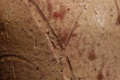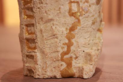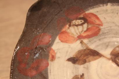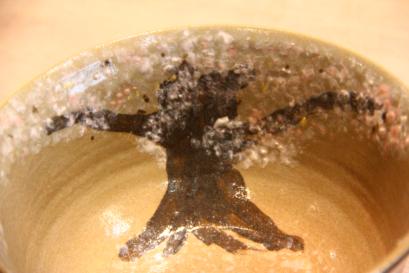 ![]() 自然灰が濃くかかった部分に金を塗り2度焼いています。 (レシピはメンバーズサイトで 公開) |