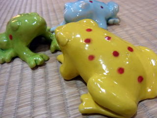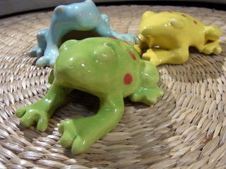 ![]() 鮮やかなカエル3兄弟、インテリアに使うとお洒落! (レシピはメンバーズサイトで 公開) |
