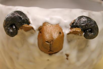![]() 今年の干支「ひつじ」の器。毛糸を中に入れて編み物するそうです。(レシピはメンバーズサイトで 公開) |