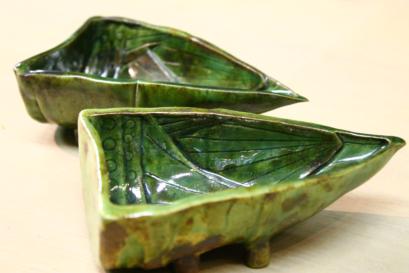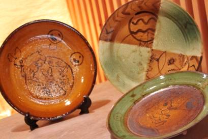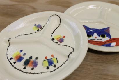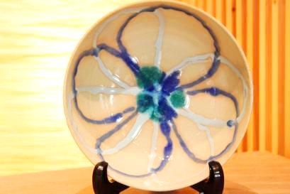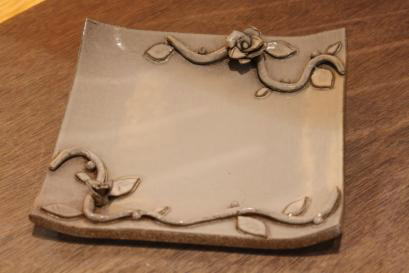 ![]() 体験教室でも4回体験になると凝った作品が出来上がります。3Dにモチーフを加飾した板皿。淡い釉の掛け方もこだわりポイント。 (レシピはメンバーズサイトで 公開) |