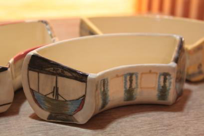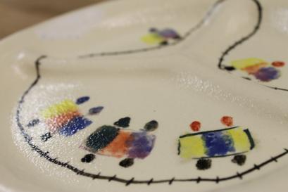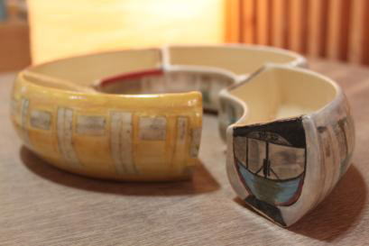 ![]() 電車をモチーフにした器。ろくろで成形した、一本の輪から切り出しているので、電車らしく連結することが出来ます。(レシピはメンバーズサイトで 公開) |