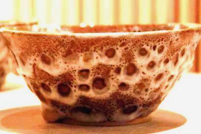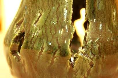![]() 厚い施釉によるダイナミックな貫入と釉の縮れ。(レシピはメンバーズサイトで 公開) |