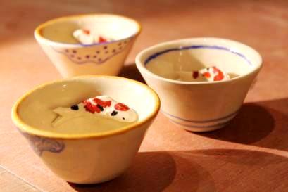 ![]() 釉薬の僅かな色味が、霧のような霞のような、ひんやりとした気温と空気を演出しています。(レシピはメンバーズサイトで 公開) |