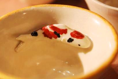 ![]() うろこを金で装飾しています。ほんのりきらめく感じはまるで川で泳いでいるかのよう!!(レシピはメンバーズサイトで 公開) |