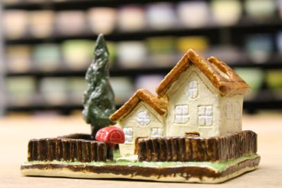 ![]() 小さな町並みや草花もひとつひとつつくり絵付けをしました。(レシピはメンバーズサイトで 公開) |