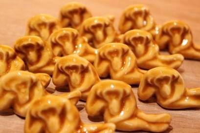 ![]() 憂いを帯びた表情…彼にはしっかり取り出し口が作られていますので割られる心配はありません。もちろん中は空洞です。(レシピはメンバーズサイトで 公開) |