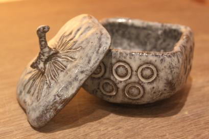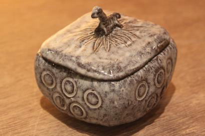 ![]() こちらは蓋物の作品ですが、トゲトゲしていて持てません。 |