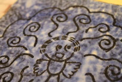 ![]() お子様曰く「吐き気」のシーンらしいです。偶然でしたが、なまこ釉によって「気分が悪い感じ」がうまく出ている作品となりました。(レシピはメンバーズサイトで 公開) |