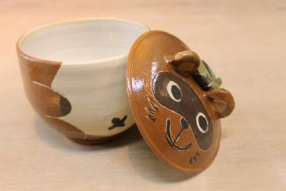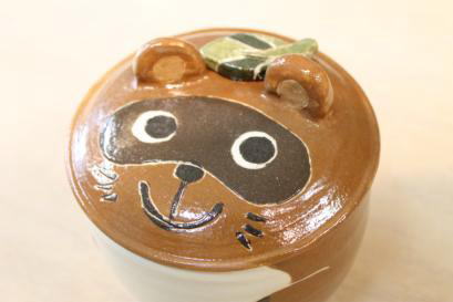 ![]() たぬきの味噌壷。大物で蓋物は難易度が高いですが、装飾も含め粘り強く制作されました。頭の葉っぱも凝っています。(レシピはメンバーズサイトで 公開) |