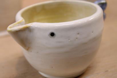 ![]() カモメ親子の片口。尻尾が青色で夏向きのさわやかな器です。めんつゆやお酒、いろいろ入れられそうですね。(レシピはメンバーズサイトで 公開) |