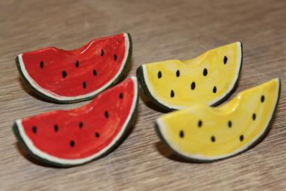 ![]() キウイの置物です。練り込みの雰囲気と釉薬がアクセントとなっています。(レシピはメンバーズサイトで 公開) |