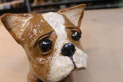 ![]() 土台も専用に制作。すくっと立ち上がった姿勢がとても心に刺さりました。番犬というより人懐っこそうで作者の温厚さが伝わる作品です(レシピはメンバーズサイトで 公開) |