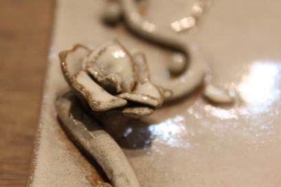 ![]() 彫りを施したところに釉薬をためて美しさが際立つものになりました!額縁に入れたくなる絶品ですね!(レシピはメンバーズサイトで 公開) |