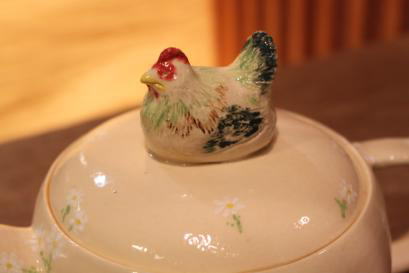 ![]() 蓋のつまみを大胆にアレンジしたティーポットが新年最初の絶品です。干支は酉から戌に変わってしまいましたが、丸々とした鶏はまだその座を明け渡す気はなさそう。 (レシピはメンバーズサイトで 公開) |