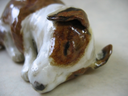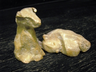 ![]() 前足と後ろ足でうつむいて立っています。 うつわの形とも合っていていいですね! |