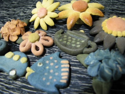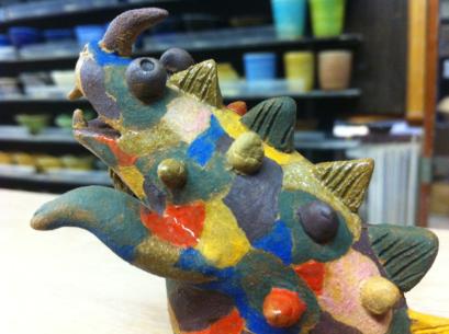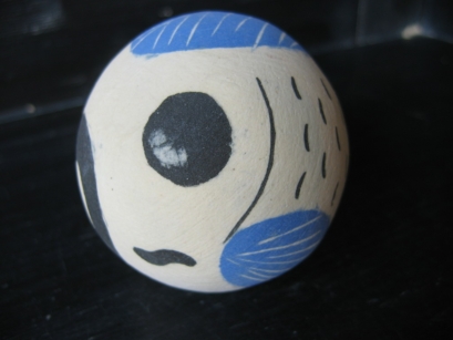![]() いろどろだんごの魚 泥だんごが進化した!球体のなかに如何にモチーフを表現するかが楽しく難しい。 |