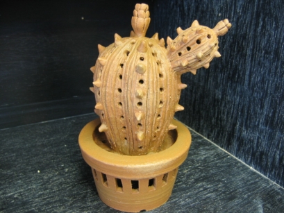 ![]() サボテンの陶灯 中に灯りが入って陶灯になります。本物っぽい凸凹感、照明器具として利用できる範疇での表面装飾。実用的でユニークな絶品です。 |