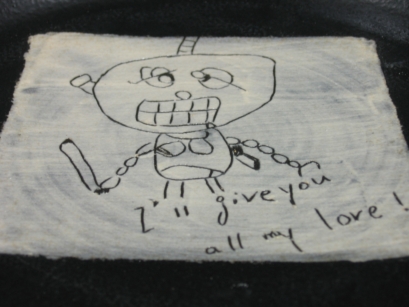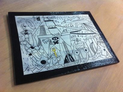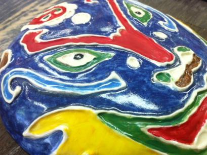 ![]() 将来漫画家になりたい小学生の息子さんの絵を写し取った陶板。 子供の発想力と大人の描写力が合わさった親子合作のプレートです。 (レシピはメンバーズサイトで 公開) |