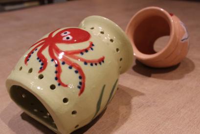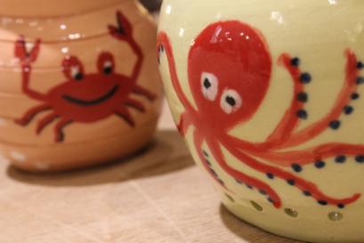 ![]() 今回は海に住む生き物です。 カラフルな器のかわいいカニとタコです! |