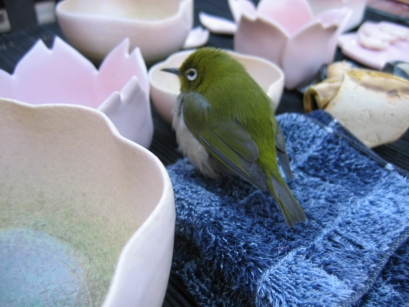 ![]() メジロが来ました 彩泥窯へメジロが遊びに来ました。寒そうだったのでハンドタオルを置きましたらその上でご休憩。。。 |