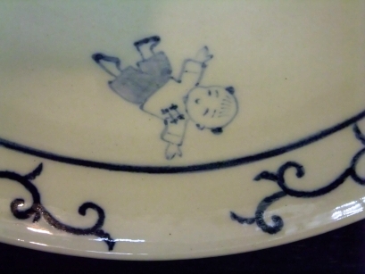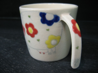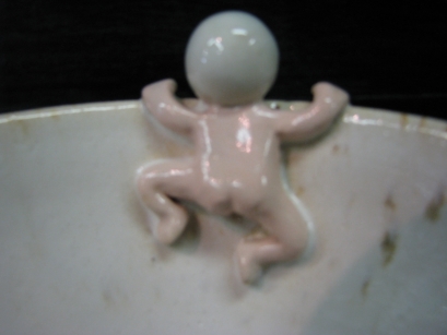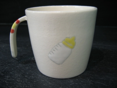 ![]() ①何でしょうか!?哺乳瓶が見えます。取っ手も面白い形ですね。ミルクカップでしょうか。 |