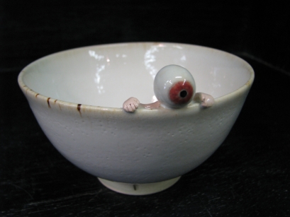 ![]() 上から見るとこんな感じ・・・・ 本焼きを終えて窯蓋を開けたら、ばっちり目が合って、びっくりしました(笑)。 |