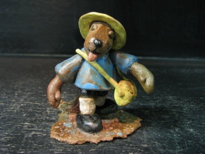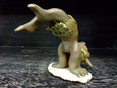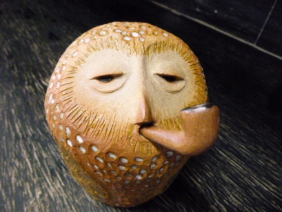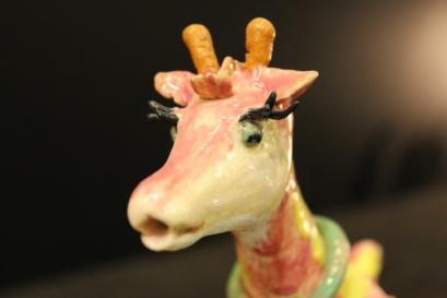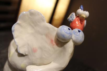 ![]() 耳にはピアスの穴が開いています。 頭にはピンクや黄色の布たわしが乗るそうです。 一見パンクロッカー?と思いきやファンキーな作品ですね。 |