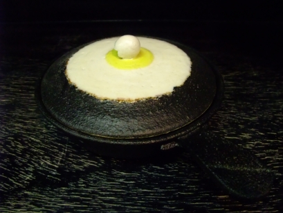 お茶の葉を乗せる受け皿、熱源となる蝋燭立、華活けがセットになっています。 多々良の精緻な成形と程良く出た釉薬の結晶が美しい絶品です。 (レシピはメンバーズサイトで 公開) |