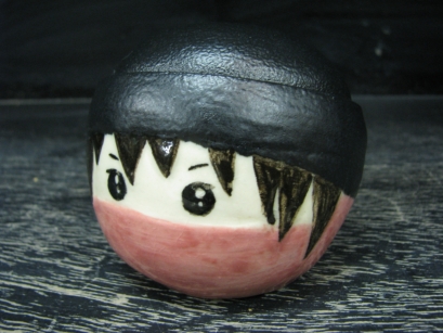 ![]() 方口です “しずくちゃん”という、西のほうのチルドレンでは有名なキャラクターらしいです。頭の先がとんがって、しずくみたいですね。 |