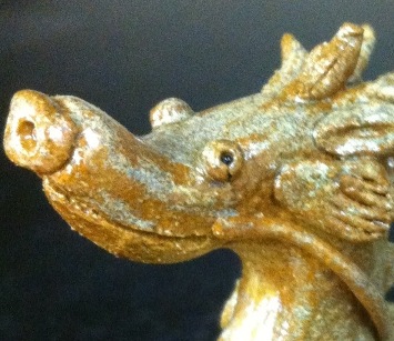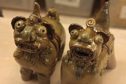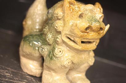 ![]() シーサーでしょうか ご自宅の門に設置するそうです。でも、実はモチーフはキャバリアだそうです。 |