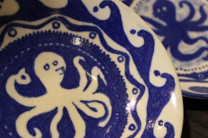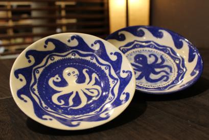 ![]() オクトパス!?のペアプレート 今にもタコ踊りしてしまいそうな楽しいお皿ですね。(レシピはメンバーズサイトで 公開) |