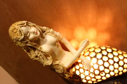 ![]() おそらく世界初 人魚の透かし彫り ランプシェードです。 眩い光がなんともセクシーですね。(レシピはメンバーズサイトで 公開) |
