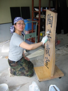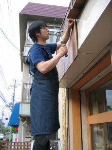 ![]() 看板も手作り、ニス塗りで仕上げ |