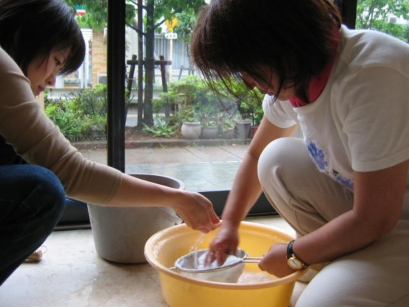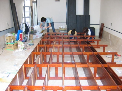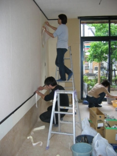 ![]() ろくろ棚のペンキ塗り(生徒達と) |