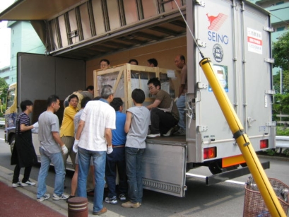 ![]() 梱包の木枠も皆で片付ければあっという間に |